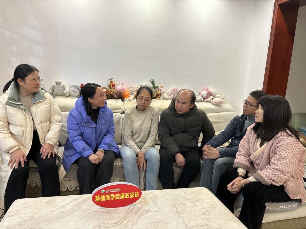 为深入贯彻落实习近平总书记关于注重家风家训的重要指示精神,引导广大教职工崇廉洁、正家风的浓厚家庭氛围,12月18日晚上,beats365亚洲版官网党委书记宾晓芸一行到公司病原生物学与免疫学教研室黄干荣老师家开展廉政家访活动。