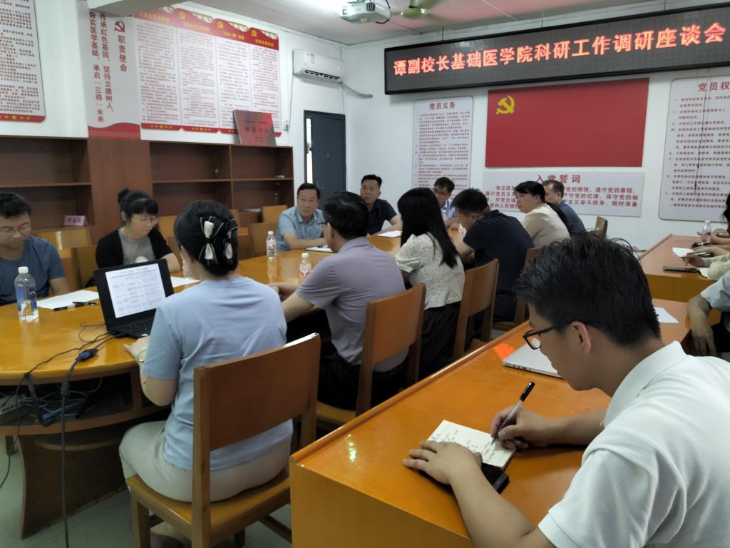 4月19日下午,公司党委常委、副董事长谭盛葵在科技处处长黄忠仕的陪同下到beats365亚洲版官网开展科研工作调研,beats365亚洲版官网党委书记宾晓芸,经理黄衍强,基础医学各二级学科、学术带头人参加了调研座谈会。
