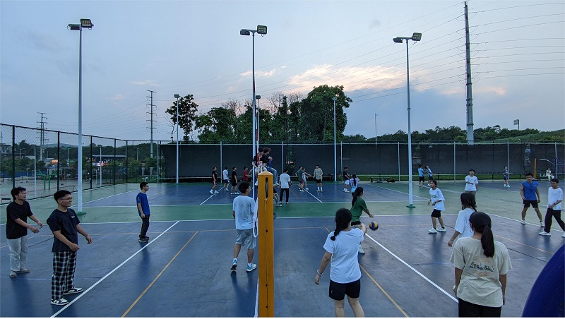一声哨响之后,本次比赛正式打响。一次次闪转腾挪,一次次飞身扑跃,同学们的配合渐渐地从陌生到熟悉。随着太阳的余晖隐于西山之中,夏日的燥热也逐渐褪去。但同学们的热情愈发高涨,加油、呐喊、助威声此起彼伏,扣球、杀球、救球等精彩纷呈。