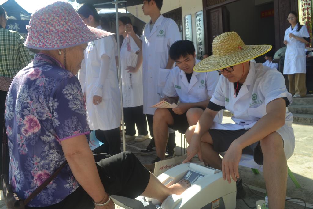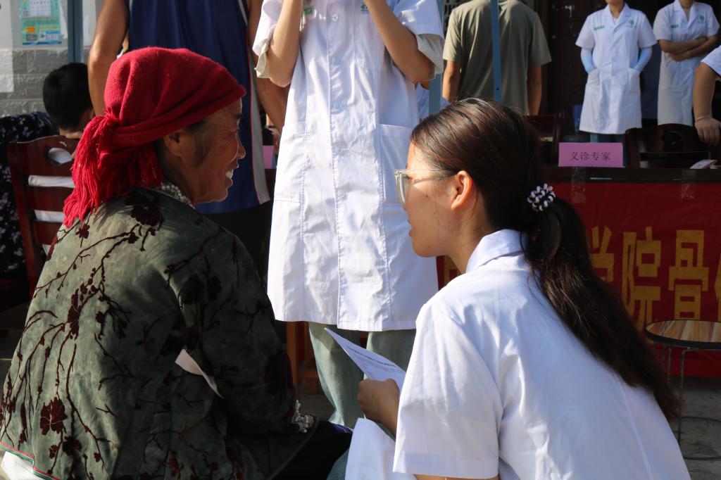 实践团成员们充分发挥所学专业知识,团结协作,积极为村民提供医疗保健与疾病健康免费问诊咨询服务。他们发放医疗保险惠民政策宣传手册,向村民宣传高血压、糖尿病等慢性病知识,为村民提供按摩、量血压、骨密度测量等服务。同时,还细心地为儿童测量身高和视力、检查牙齿等,用实际行动践行了医员工的初心与使命,为乡村振兴贡献了自己的青春力量。