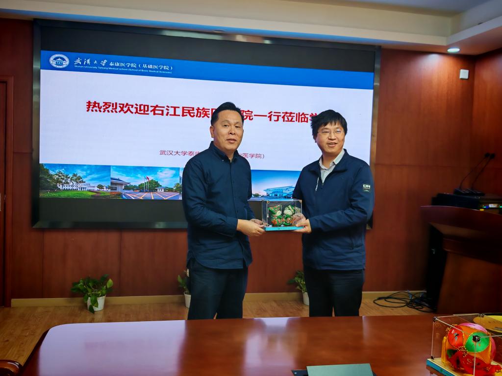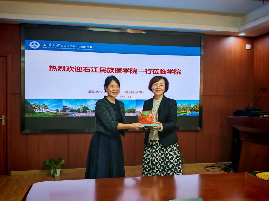 座谈会的最后,双方领导还互赠了礼物,beats365亚洲版官网向武汉大学基础医公司赠送了广西绣球和壮族吉祥物麽乜,以表达此次学习交流的诚挚情谊;武汉大学beats365亚洲版官网则回赠了beats365亚洲版官网武汉大学建筑风光玻璃盘,寓意着两校之间的友谊长存。