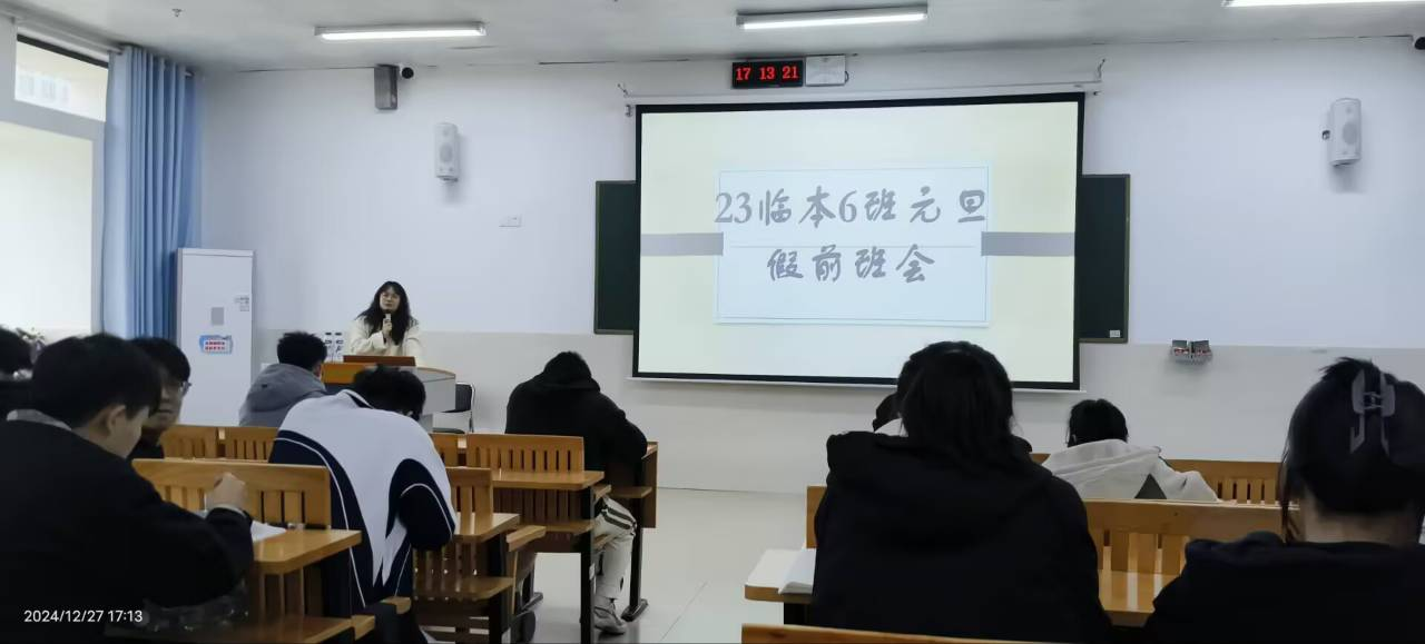 为了庆祝元旦佳节的到来,凝聚全体员工精神,以斗志昂扬的面貌和积极乐观的态度面对学习生活,2024年12月27日下午,2023级临床医学本科6班召开“庆元旦·迎新年”主题班会活动。