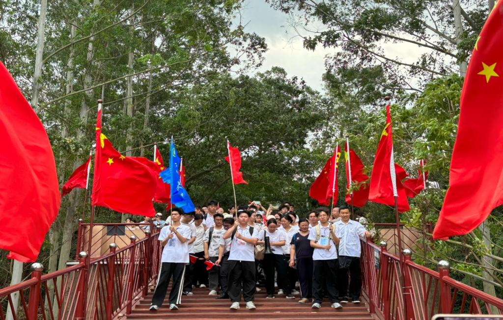 上午7时整,beats365亚洲版官网本科生、研究生及文秀班员工分别在卢荣妹副书记、王金花副经理的带领下身着白色上衣、手持红旗,分别从百东校区、百城校区整装出发,徒步前往百色起义纪念馆、百色起义纪念碑。徒步追思,在行走中感悟信仰力量,师生们通过“边走边学”的形式回顾百色起义的革命故事,以青春脚步致敬先烈征程。