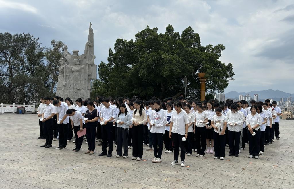 师生们依次向革命烈士敬献小白花