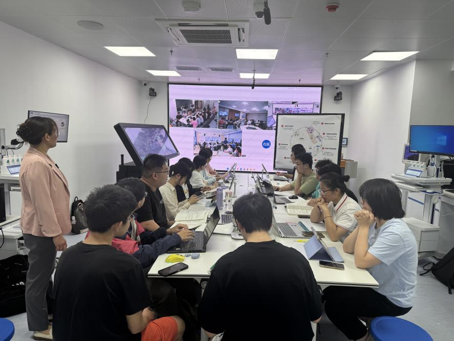在第二节课的讨论环节,三校员工进行了混合编组。各组员工积极投入,第一组扮演肿瘤细胞,围绕肿瘤免疫逃逸的机制展开热烈讨论;第二组则化身肿瘤免疫治疗专家,探讨肿瘤免疫治疗的方案;第三组则运用 AI 技术判断第一组和第二组的发言是否正确,为讨论过程增添了科技支持。最后,武汉大学员工还体验了智能穿戴式标准化病人,线上同学通过腾讯会议观看了整个操作过程,进一步拓宽了医学实践的视野。