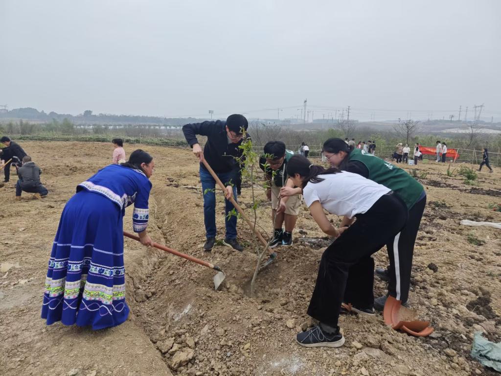 “植”此青绿,不负春“锋”。3月12日植树节,我院师生代表在百东校区劳动教育实践基地组织开展了植树活动。现场气氛热烈,一副欢天喜地的景象,师生们齐心协力,挖坑、填土、浇水。在师生携手努力下,象征着民族团结的石榴树率先被种下,寄寓着我国56个民族像石榴籽一样紧紧抱在一起。 这不仅寄托了师生们对植物生长的期盼,更是对国家民族大团结的坚定信念。