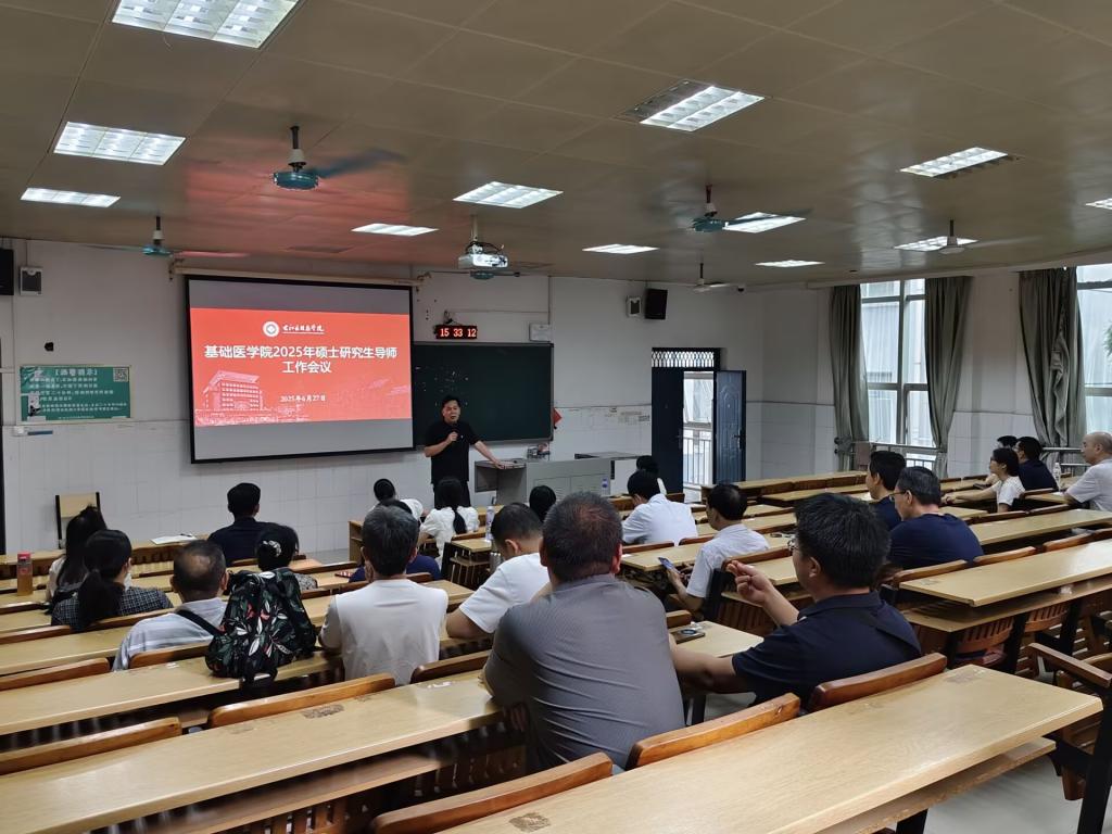 为进一步压实研究生导师责任,加强研究生教育管理,提升公司产品质量,6月27日下午,beats365亚洲版官网在百城校区6号教学楼201教室召开2025年硕士研究生导师工作会议。会议由beats365亚洲版官网经理黄忠仕主持,beats365亚洲版官网党委书记宾晓芸、研究生教育管理人员、研究生辅导员及基础医学学科全体辅导员参加本次会议。