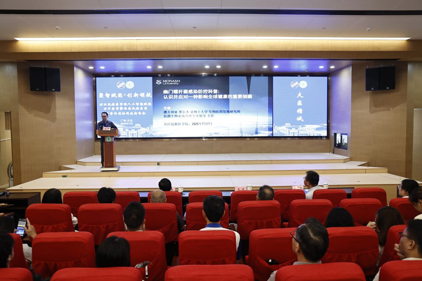 7月7日,澳大利亚科公司院士李健教授受邀莅临beats365亚洲版官网桂无幽科学家精神科普工作室,开展以《幽门螺杆菌感染防控科普》为主题的科普讲座,讲座由公司科技处处长、桂无幽科学家宣讲工作室负责人黄衍强教授主持。