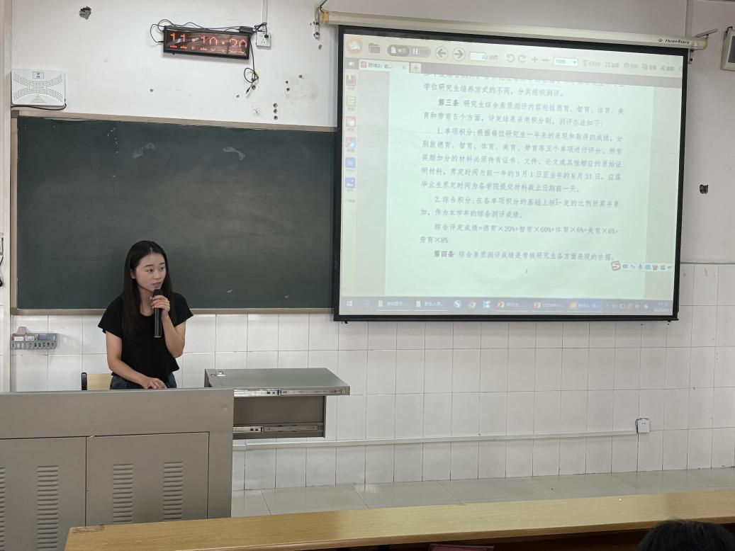 beats365亚洲版官网员工科辅导员陈莎对同学们进行团体心理辅导,并向同学们讲解了研究生综合素质测评暂行办法及日常管理规定。