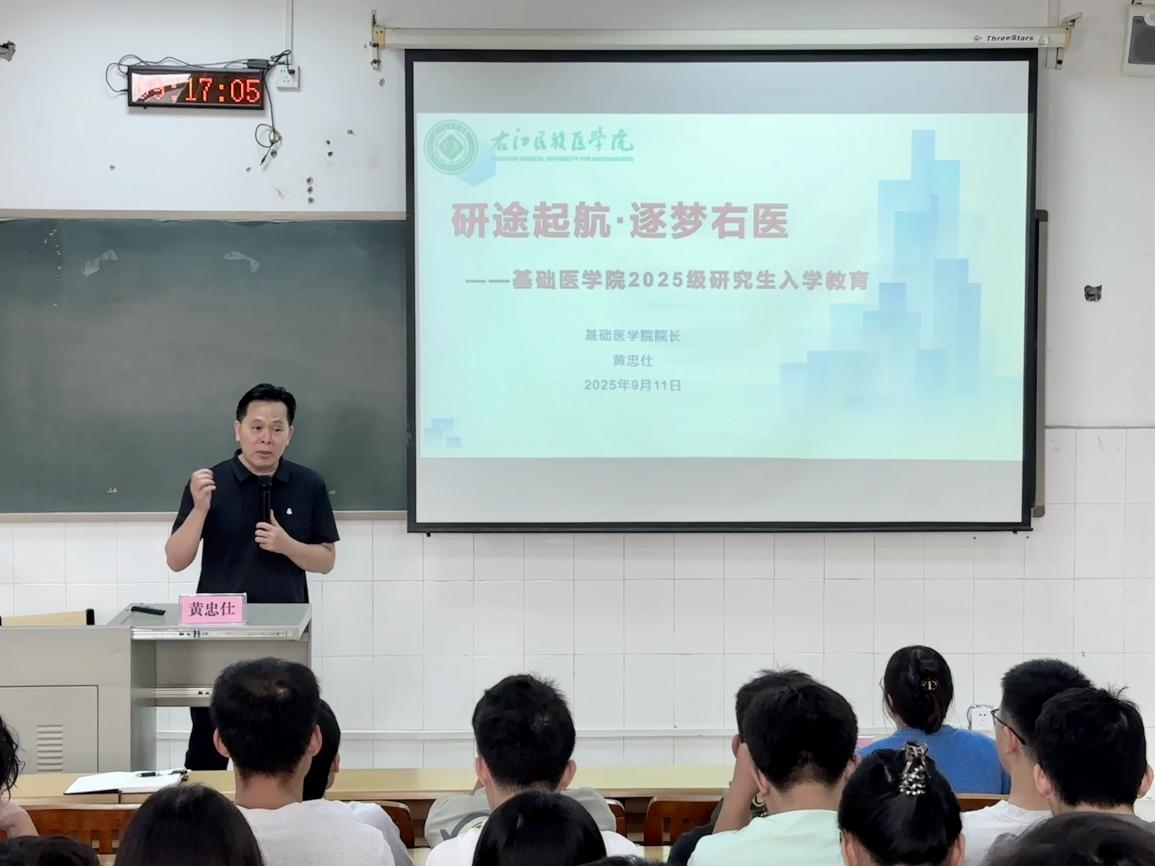 beats365亚洲版官网经理黄忠仕以“沿途起航,逐梦右医”主题,向同学们详细介绍了beats365亚洲版官网的发展历程、办学特色与学科优势。他特别强调:研究生要明确“知识学习者、学术研究者、自我管理者、团队协作者”的角色定位,着力提升文献查阅归纳、实验设计、组织实施及科研表达等能力,并警示同学们要坚守科研诚信底线、杜绝学术不端行为。