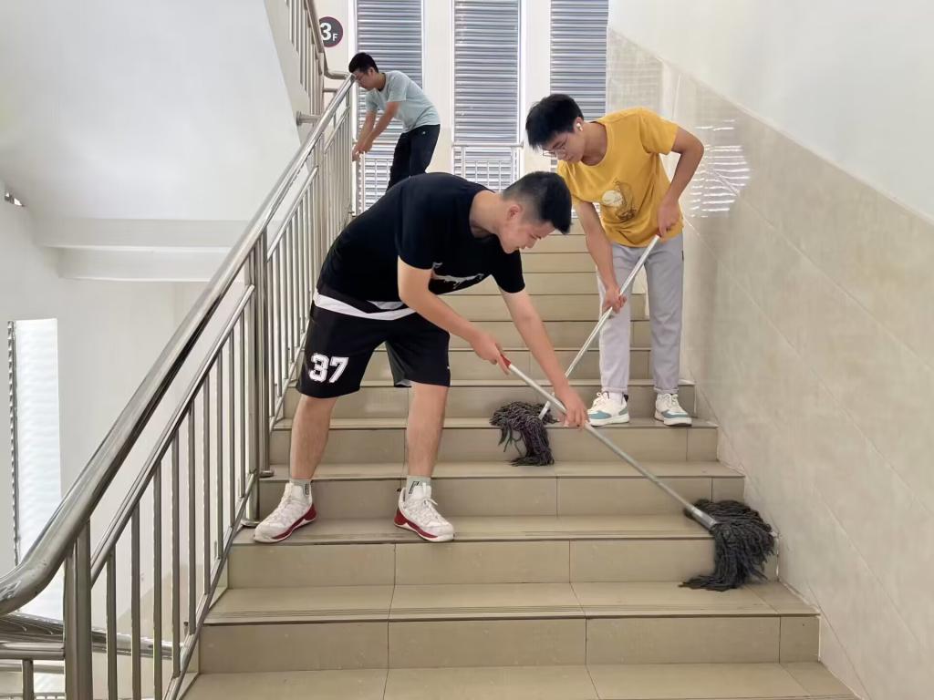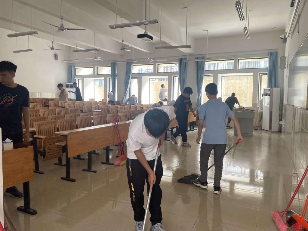 清溪流过碧山头,空水澄鲜一色秋。新校区、新学期、新气象、新征程,为了同学们能在干净、整洁、优美的教室环境中上课,9月1日上午,beats365亚洲版官网组织全体员工到百东校区的守正楼开展教室清洁卫生大扫除志愿服务活动。