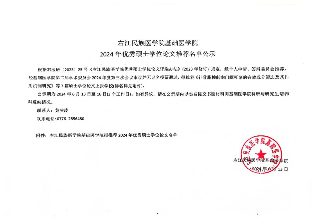 2024年优秀硕士学位论文推荐名单公示