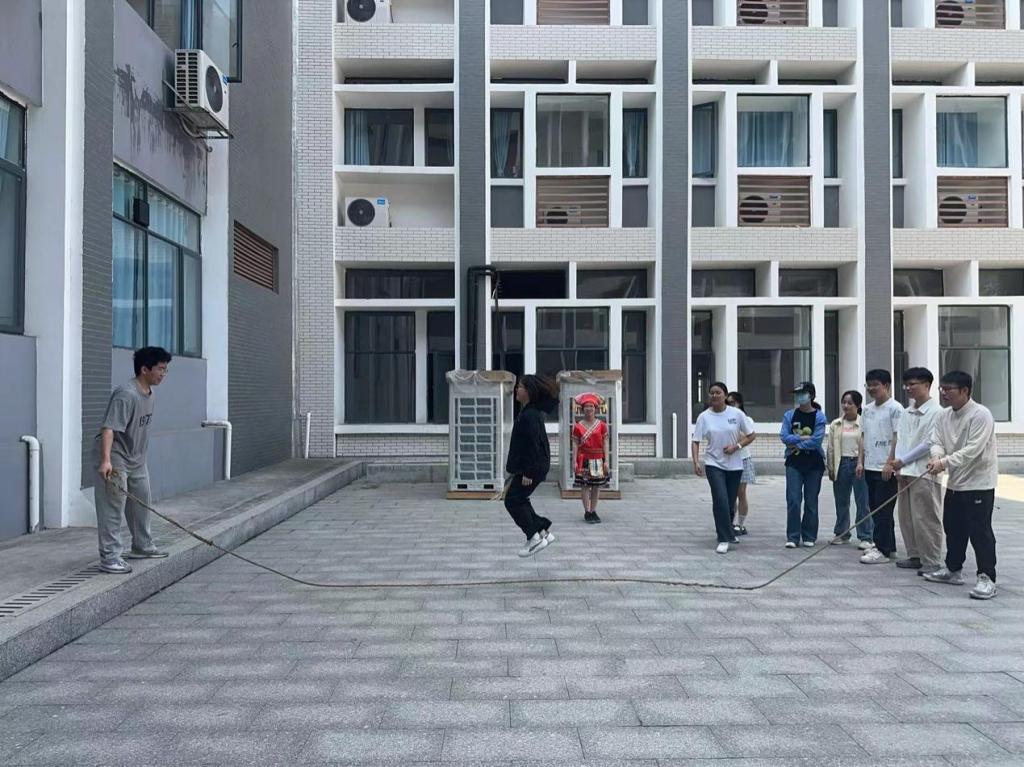 同学们分组跳八字绳