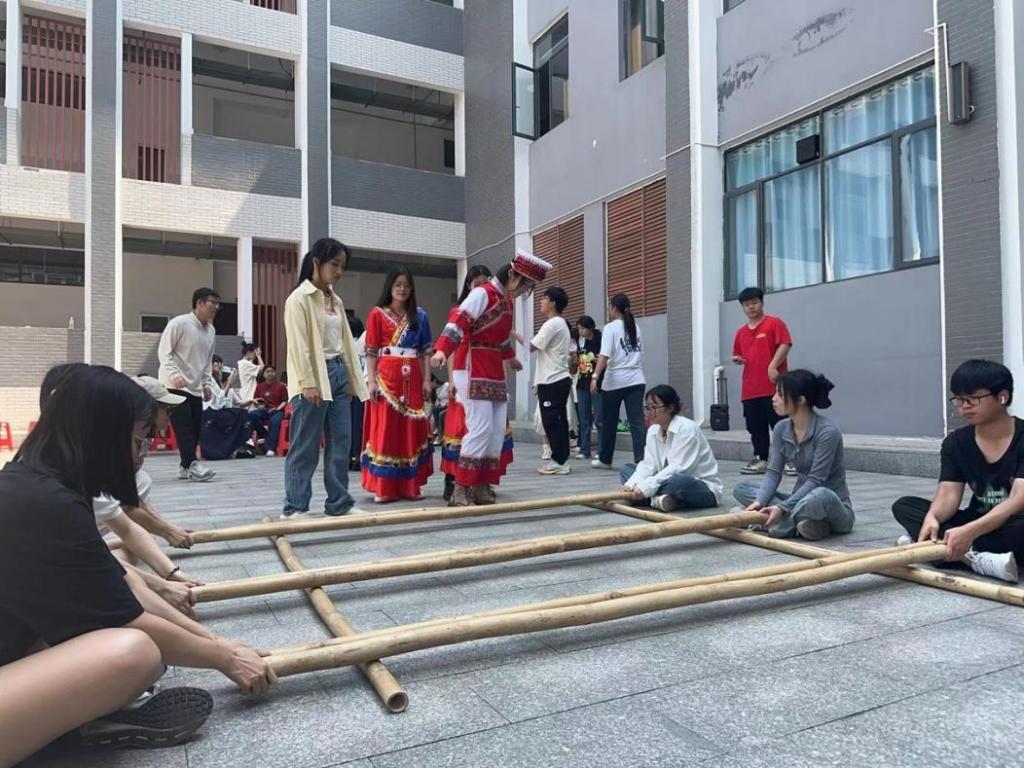 同学们跳竹竿舞