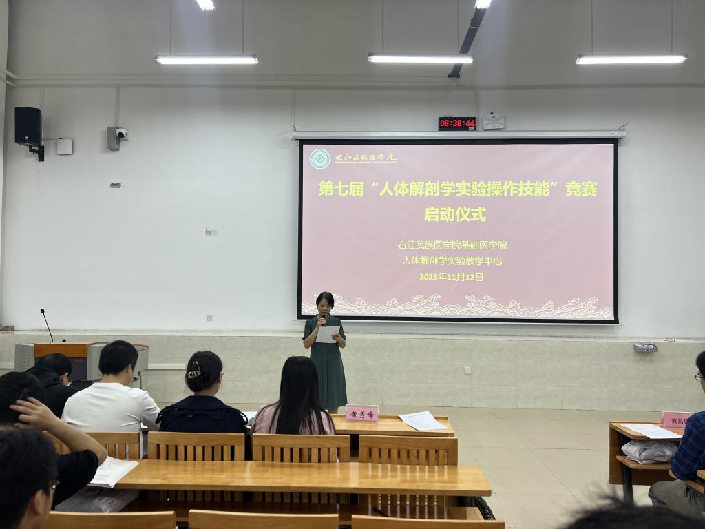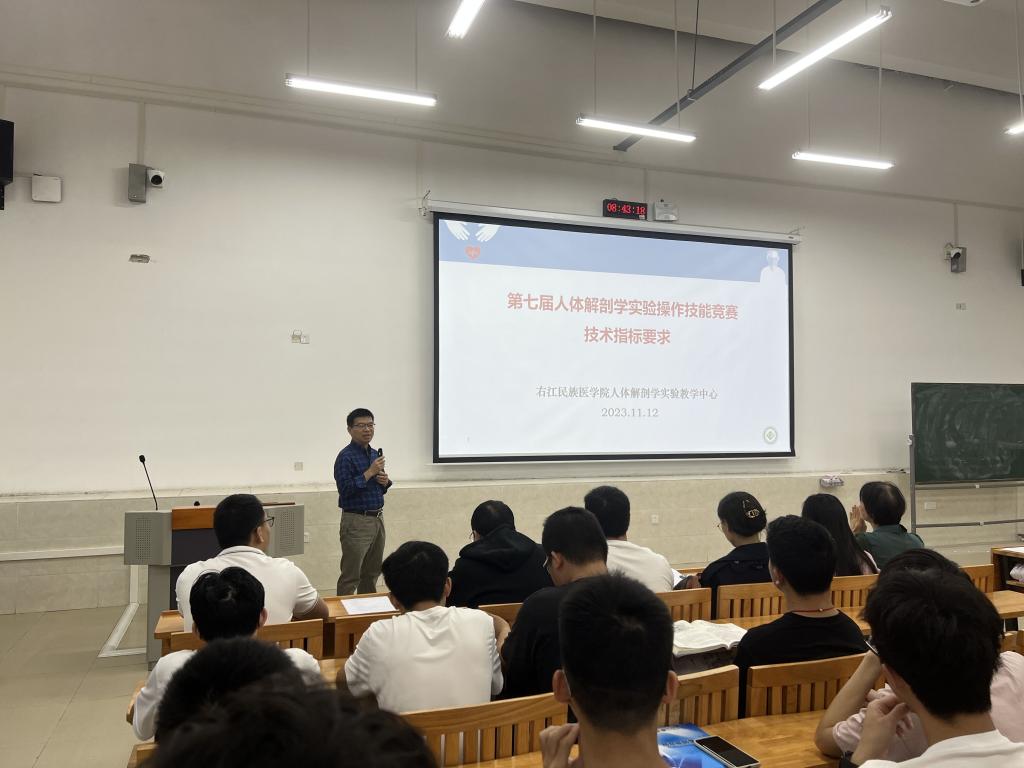 为进一步提升员工解剖操作技能水平,11月12日上午,beats365亚洲版官网主办、人体解剖学实验教学中心承办的第七届“人体解剖学实验操作技能”竞赛启动仪式在百东校区守正楼C107教室举行,人体解剖学实验教学中心黄秀峰主任、黄昌盛副主任,人体解剖学实验教学中心全体教师以及各竞赛小组的指导教师和196名参赛员工参加启动仪式。