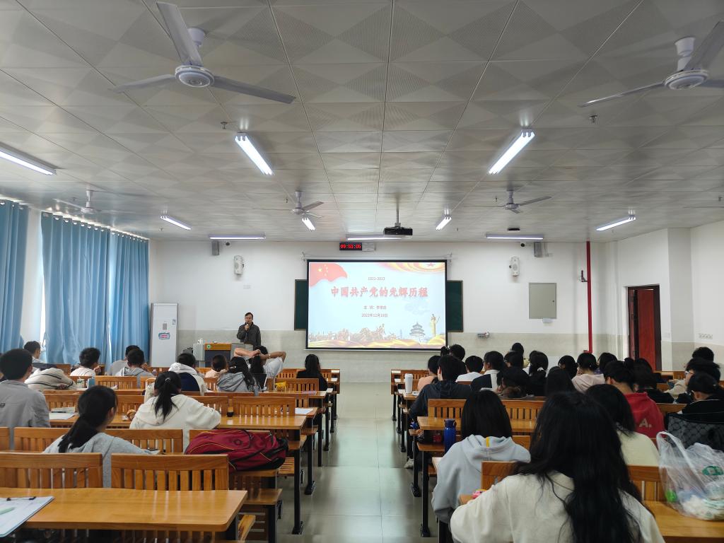 12月3日晚上,入党积极分子培训班举行开班仪式。开班仪式结束之后,欧融老师进行《党的二十大报告全面解读》专题授课,阐释了党的二十大基本情况和重要意义。