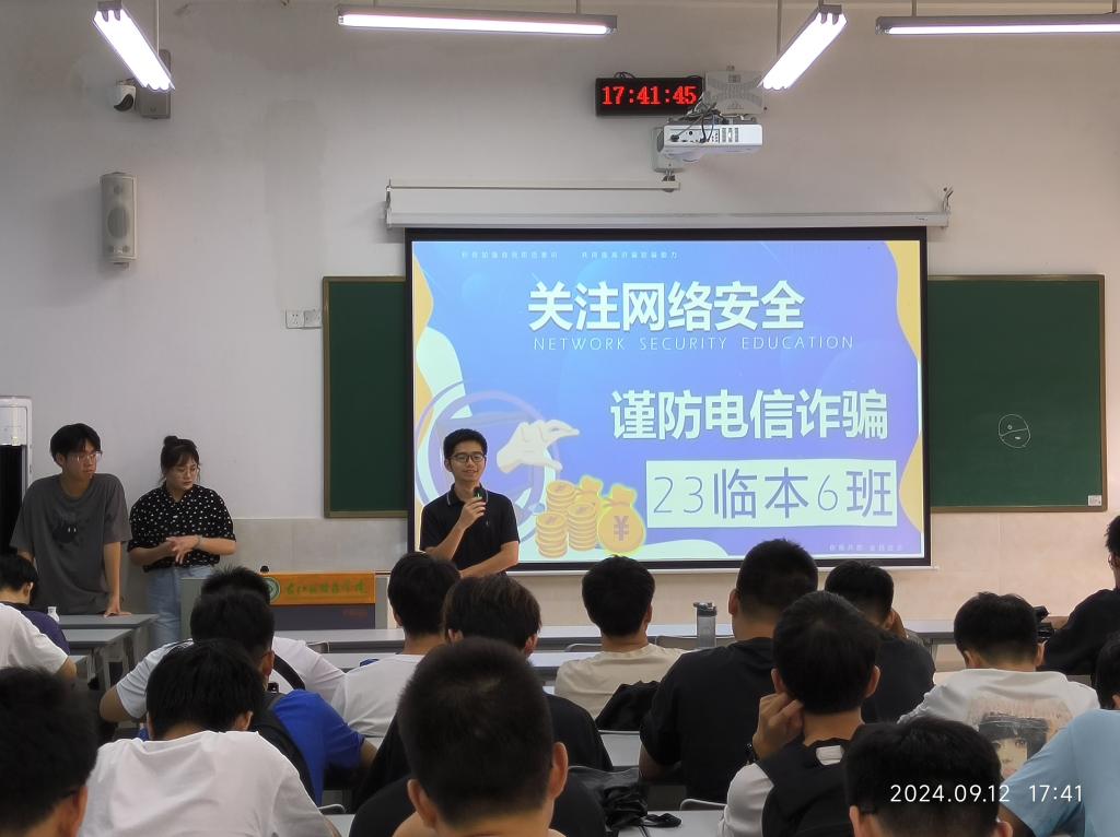 随着网络的飞速发展,电信诈骗案件频频发生,诈骗手段花样百出,令人防不胜防,为提高同学们自觉防范电信网络诈骗意识,减少、避免财产损失,9月12日下午,2023级临本6班开展了“关注网络安全,谨防电信诈骗”为主题的班会,班会由班主任黄瑶老师策划主持,2023级临本6班全体同学参加。