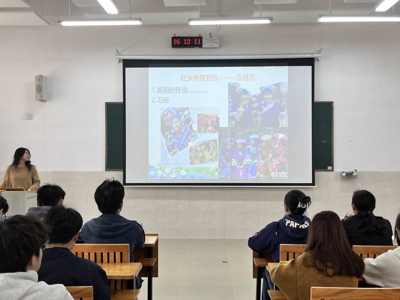 学习活动中,各班级通过PPT展示、观看民俗文化宣传片等形式,让学生深入了解了壮锦制作、山歌传唱等传统技艺和习俗,深刻感悟到中华优秀传统文化的独特魅力和深厚底蕴。